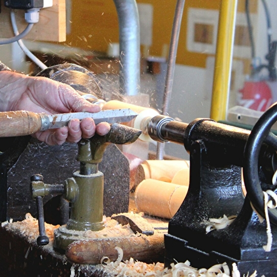 Dans l’odeur et la chaleur du bois, assistez en direct à la beauté et à la dextérité de gestes séculaires. Voyez comme le tourneur dégrossit, affûte, taille, évide, polit le bois et comment sous ses doigts un simple morceau de bois se transforme en un objet unique. Captivant !