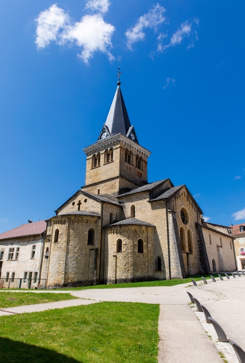 Yole, la sœur de Saint Romain et Saint Lupicin, a fondé ici son monastère de sœurs, sur le site de La Balme. Âgé de soixante-dix ans, Romain décide de rendre visite à sa sœur, c’est ici qu’il décède vers 460. Au XIIe siècle, l’église est reconstruite et devient un prieuré d’hommes avant d’être une église paroissiale. Cette chapelle romane est située sur un promontoire rocheux surplombant la vallée de la Bienne de plus de 350 m ! Vous pouvez la découvrir grâce à notre Aventure Jeux, "Le Secret de la Roche bleue", pour une aventure en famille.