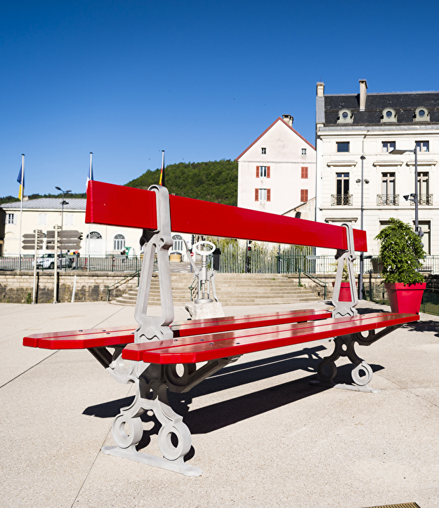 Lilian Bourgeat, artiste originaire de Saint-Claude, a exposé en 2019 de gigantesques créations de résines sur le territoire. Parmi toutes les œuvres, le Double-banc (rouge) a rencontré un vif succès. En 2021, le banc monumental est revenu définitivement à Saint-Claude sur le parvis du musée de l’Abbaye pour le plus grand plaisir de tous !