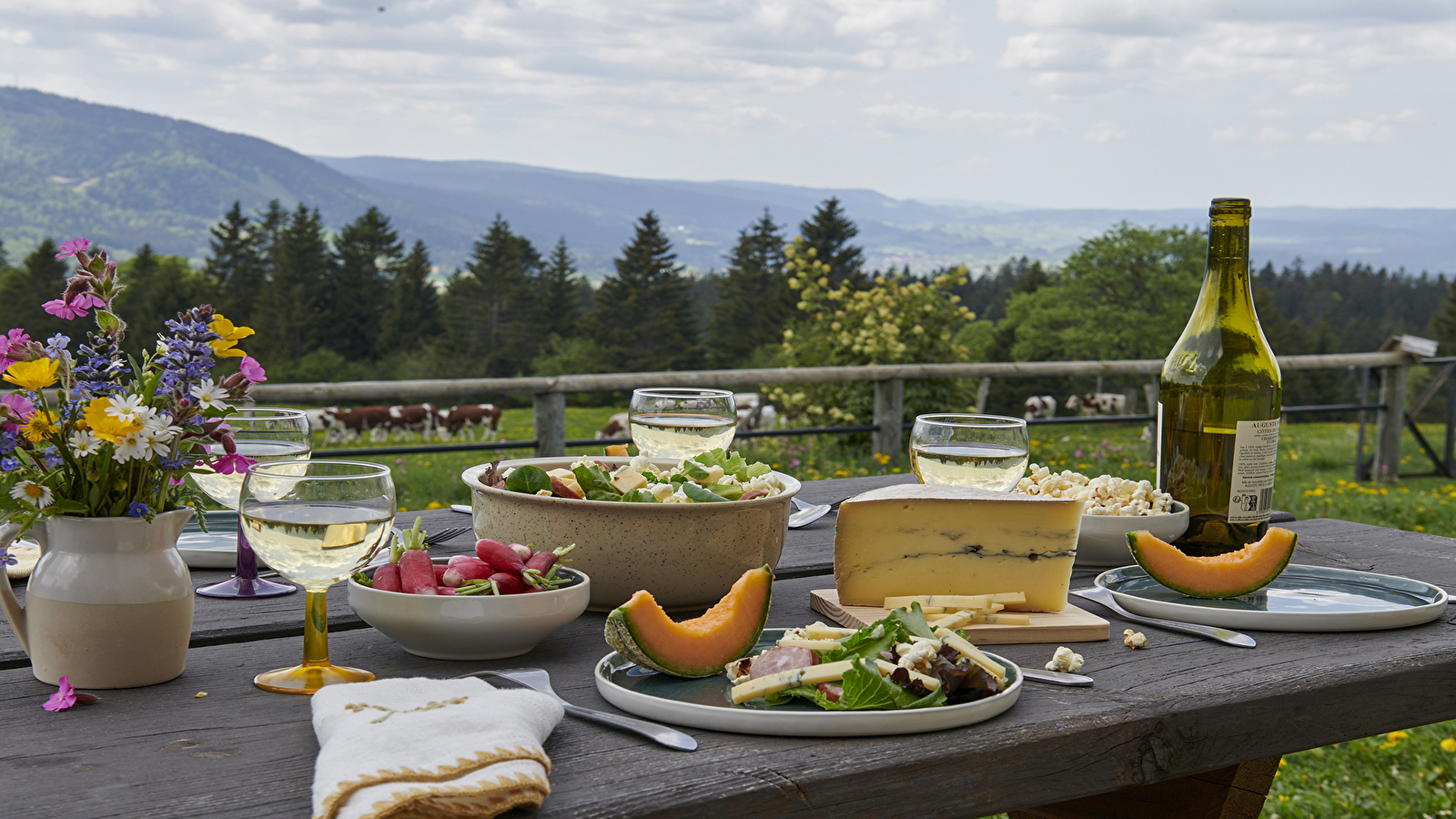 Et pour accompagner ces fromages, vous avez le choix parmi les nombreux vins du Jura. Il ne manque qu’un peu de charcuterie ou spécialités à base de poisson d’eau douce pour faire un bon repas de montagne, déguster un bon sandwich ou partager un pique-nique dans le cadre exceptionnel des sites naturels de la région.