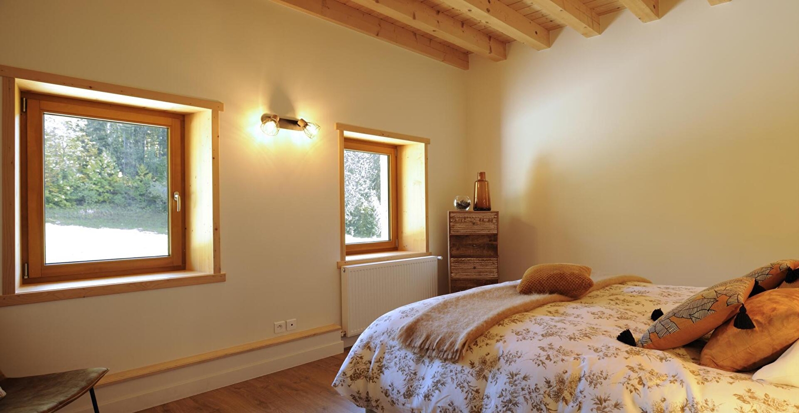 Idéalement situé aux pied des pistes en plein coeur du Parc Naturel Régional du Haut-Jura, venez découvrir été comme hiver ce magnifique gîte aménagé avec goût et offrant une vue splendide sur la nature environnante. Au rez de chaussée, belle cuisine entièrement équipée, salle à manger et wc indépendants. Le 1er étage dessert le salon équipé de canapé, fauteuils et télévision écran plat, une salle d'eau avec grande douche à l'italienne, wc indépendants, ainsi que deux chambres (l'une avec un lit en 160x200, l'autre avec un lit de 180X200). Puis au 2ème étage, vous trouverez deux autres chambres avec chacune un lit de 160X200 (pour l'une d'elle il est possible d'en faire deux lit de 80X200 à la demande) et également une seconde salle d'eau équipée d'une douche à jets hydromassants et d'un wc. Chaque chambre est dotée d'une literie de très haute qualité. Côté extérieurs, Terrasse avec salon de jardin, et terrain attenant non clos pour profiter au mieux de ce petit coin de paradis. Pour votre plus grand confort, les lits seront faits à votre arrivée et les serviettes de toilette sont fournies.