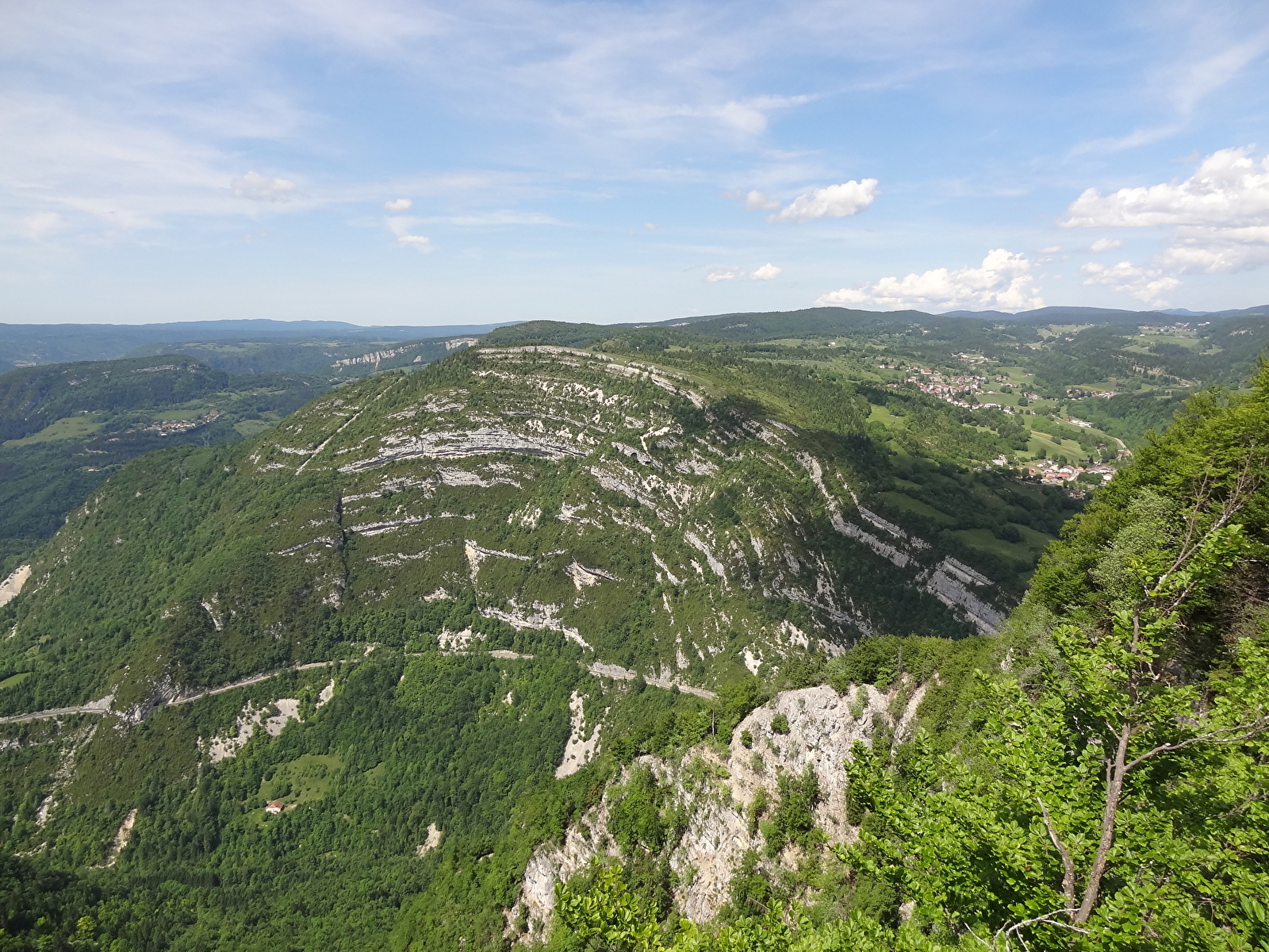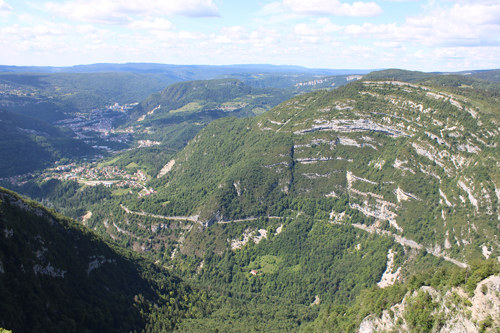 Laissez-vous impressionner par ce panorama à 360° et la vue aérienne sur la ville de Saint-Claude, la Cluse du Flumen et ses cascades, et les plissements rocheux environnants. Un spot idéal pour un pique-nique avec une vue à couper le souffle sur le paysage Haut-Jurassien.