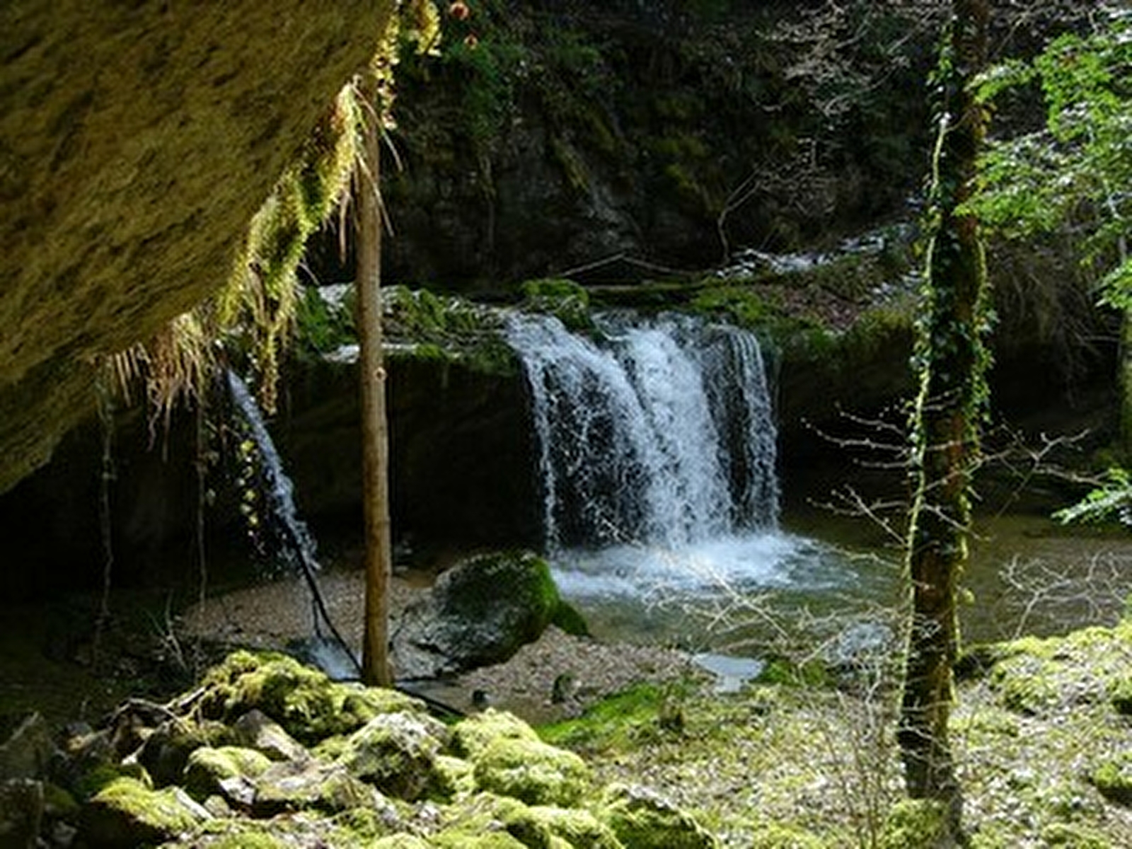 La Vouivre est le serpent fabuleux des légendes qui a inspiré le roman de Marcel Aymé : « Elle porte, sur son front, une énorme pierre précieuse d’une valeur inestimable, appelée l’escarboucle. Avant de se baigner, elle la dépose sur la rive, la cache dans la mousse ou sous une pierre. C’est à ce moment-là seulement, qu’on a des chances de s’en emparer, et alors fortune est faite. Mais si la Vouivre surprend le voleur, sa vengeance sera terrible ». En contemplant la cascade, vous aurez le sentiment que les eaux sortent subitement de la roche pour tomber plus bas dans une cuvette d’un admirable vert émeraude.