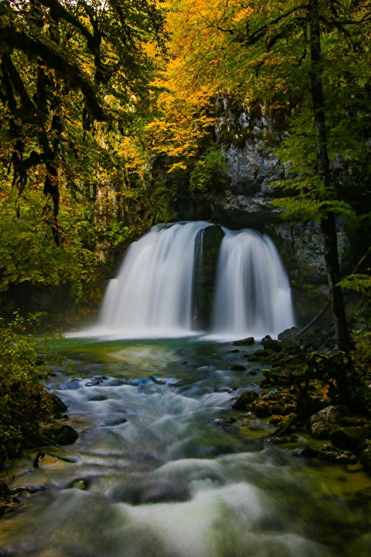 Accès : la cascade se trouve en contrebas de la route départementale (D69). Le départ se fait de l’autre côté de la route par rapport au parking des gorges de l’abîme. Traverser sur le passage piéton, longer sur 50 m le petit chemin qui borde la route et descendre par ce même chemin jusqu’à voir la cascade. Vous pourrez accéder au plus près de la cascade sur sa rive gauche, en passant le pont en bois.