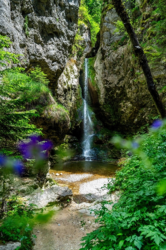 La cascade du Moulin ne manque pas de charme ! Nichée dans les gorges du Tacon, elle offre une chute de 19 m qui tombe dans une marmite creusée par la puissance de ses eaux. C’est également une jolie balade entre prés, pâtures et forêt à la découverte des fermes et du monde paysan d’autrefois aux