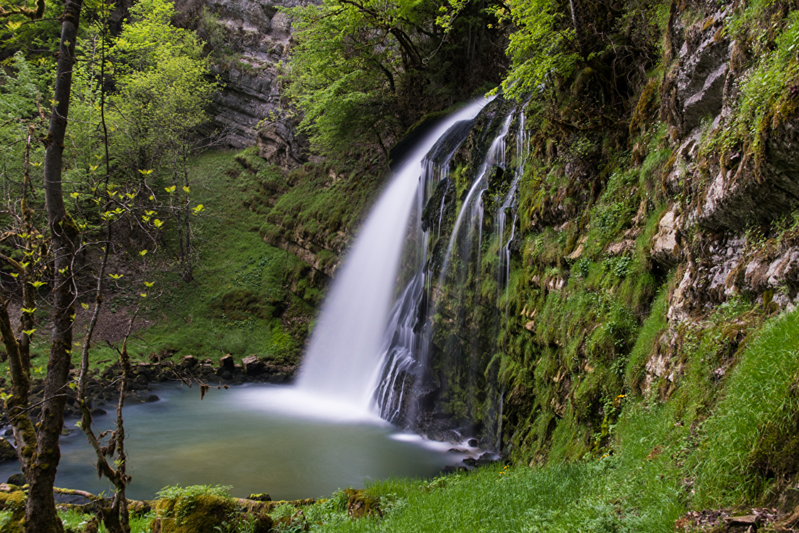 Ce site naturel classé, niché au fond d’une vallée dominée par des sommets de plus de 1 000 m, vous laissera un souvenir inoubliable. Deux chemins de 2 ou 4 km s’offrent à vous pour y accéder. Dans un cirque sombre, sauvage et préservé, les cascades tombent côte à côte. La première, à gauche, est une chute du torrent du Flumen. Les autres sont de puissantes résurgences alimentées par les eaux du lac de Lamoura. Les cascades du Flumen sont accessibles toute l’année et sont encore plus remarquables après un épisode pluvieux ou en hiver