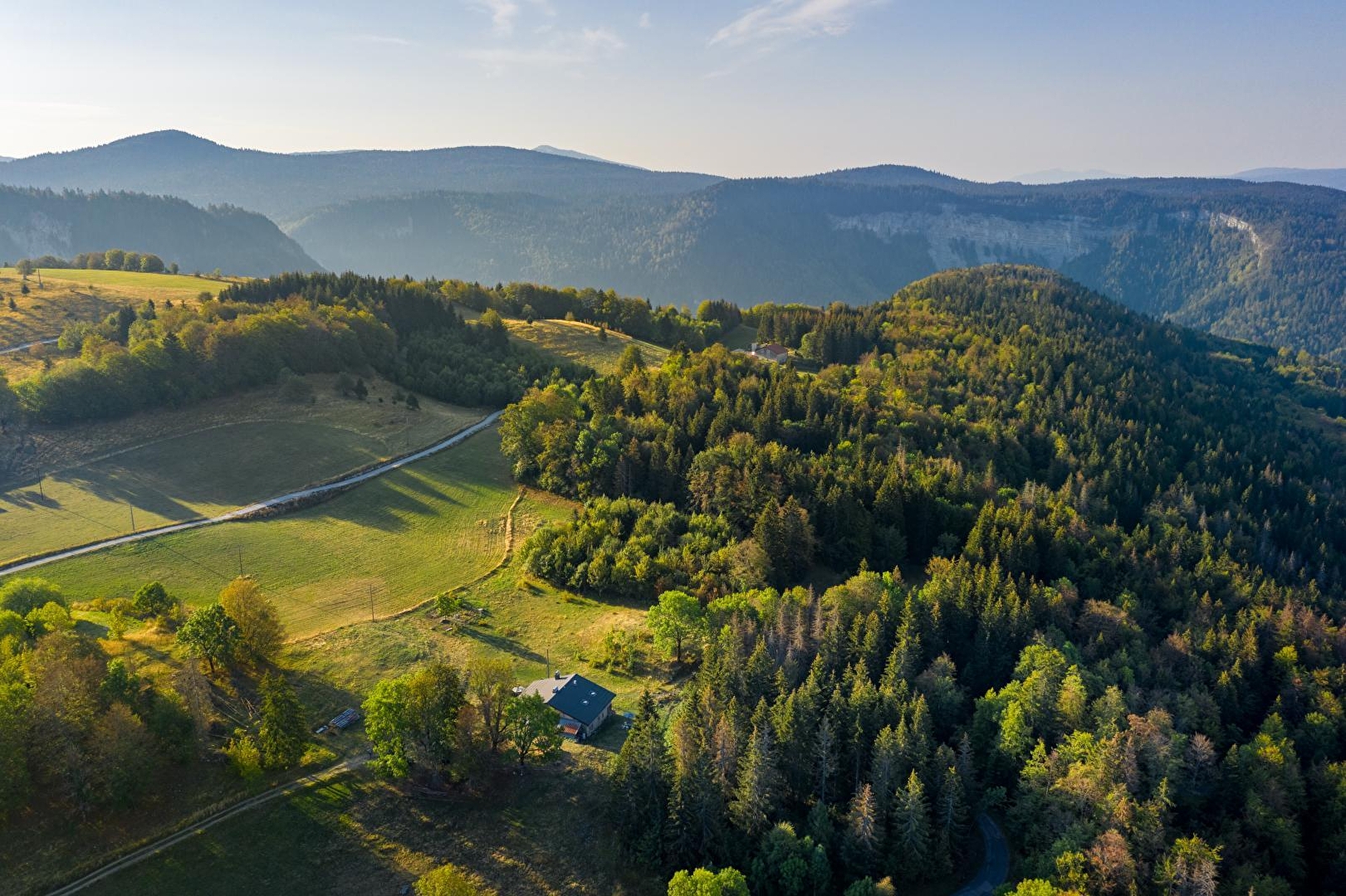 Les Roches d’Orvaz – 1160 m – aux confins de l’Ain et du Haut-Jura sur un petit plateau très protégé, à droite de la départementale qui joint le croisement de Désertin au village de La Pesse.