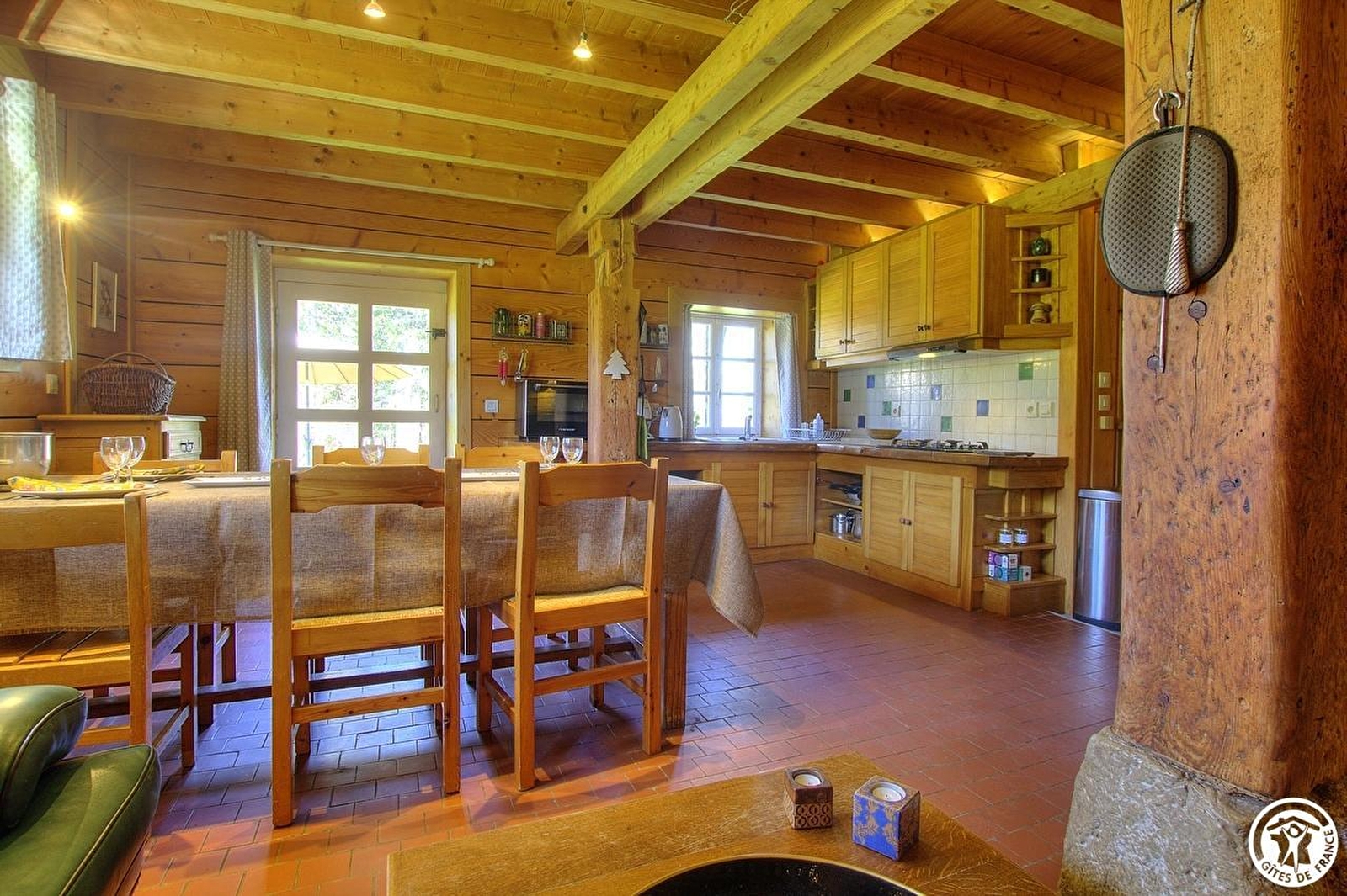 Capacité de 6 personnes – superficie de 90 m² sur 2 niveaux - aménagement bois de qualité - chauffage bois : poêle danois à bûches.