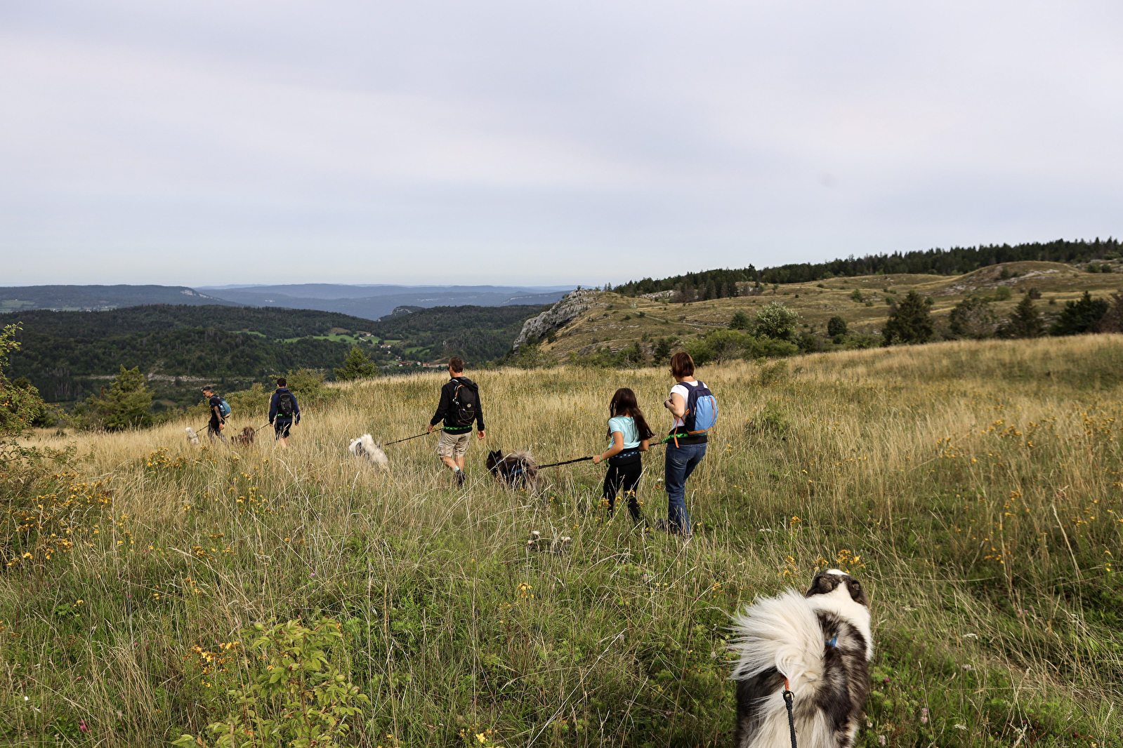 Revêtez vos chaussures de randonnée et partez à la découverte de La Pesse et de ses environs. Vous serez tracté par l’un de nos laîkas de Iakoutie équipé d’une ceinture de cani-rando autour de votre taille.
