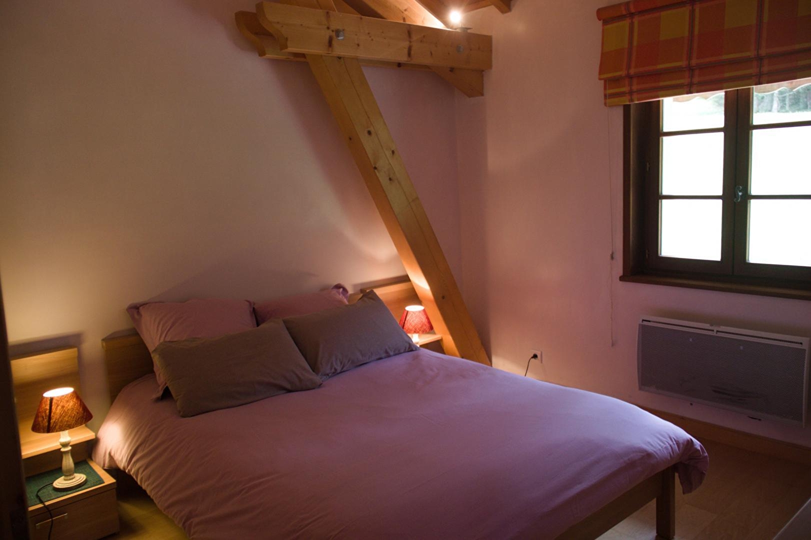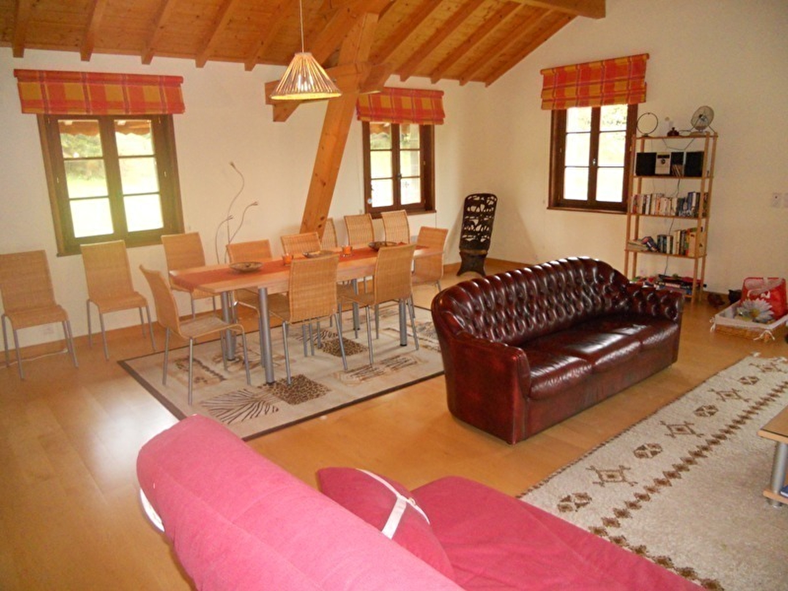 Au lieu dit "sur la roche", à 6 km du village des Bouchoux, en bordure de route Désertin-La Pesse, logement au 1er étage. Parfait pour les familles actives ou les amateurs de calme ainsi que les groupes à la recherche d' un endroit pour profiter de la nature. Au coeur des Hautes Combes, à 1150m d'altitude, le gîte est un camp de base idéal pour partir à la découverte des lacs, forêts, crêts et combes du Haut-Jura: randonnée, vélo, escalade, baignade et activités nautiques l'été, raquettes, ski de fond (250 km de pistes de ski de fond tracées et entretenues), chiens de traineaux l'hiver, ce paradis des activités nordiques est à portée de spatule (15 minutes) d'un petit domaine alpin familial et à 40 minutes des belles stations de ski alpin des Rousses et des Monts Jura. Le gîte bénéficie d'une entrée indépendante et d'un accès à une belle terrasse extérieure et à son jardin privatif non clos (avec chaises longues et barbecue). Un garage couvert (une place) vous est réservé; L'hébergement offre un bel intérieur boisé et de nombreuses ouvertures le rendent lumineux et clair en journée. Unique en son genre, la décoration inspirée de la tradition“afro-chic” vient donner à cette ancienne fromagerie jurassienne un parfum d'afrique. Le gîte peut accueillir jusqu'à 8 personnes.Il est organisé comme suit: 1 ch à lit double et une autre, très grande avec mezzanine, comportant 2 lits simples et un lit double. Un canapé-lit 2 places est situé dans le grand salon et pourra compléter ces couchages. Après une bonne journée d' activités dans la nature, le salon invite à la détente autour du feu de bois. La salle de bain, presque surdimensionnée au premier abord, sera finalement précieuse et confortable pour une famille avec enfants. Fidèle à la tradition comtoise, le gîte de l'ancienne fromagerie est conçu pour les gastronomes. La cuisine y est spacieuse et entièrement équipée pour préparer de vrais et bons repas . Bienvenue à l'ancienne fromagerie. Vous êtes chez vous.