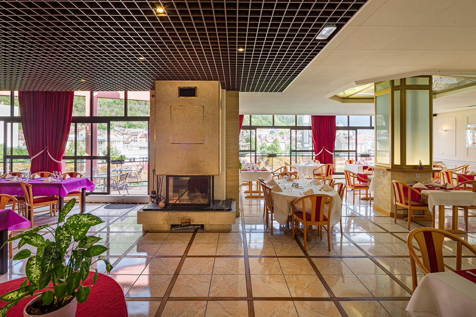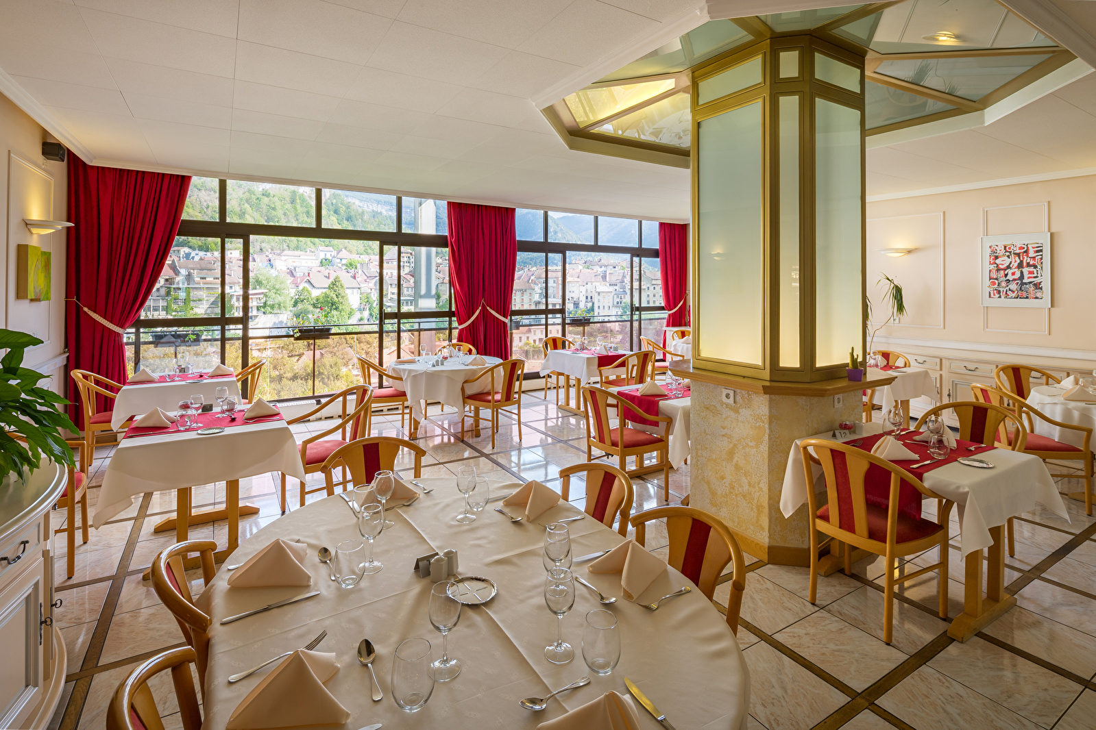 Le restaurant situé face à la gare peut accueillir jusqu'à 80 personnes et offre une superbe vue panoramique sur Saint-Claude et les montagnes environnantes.