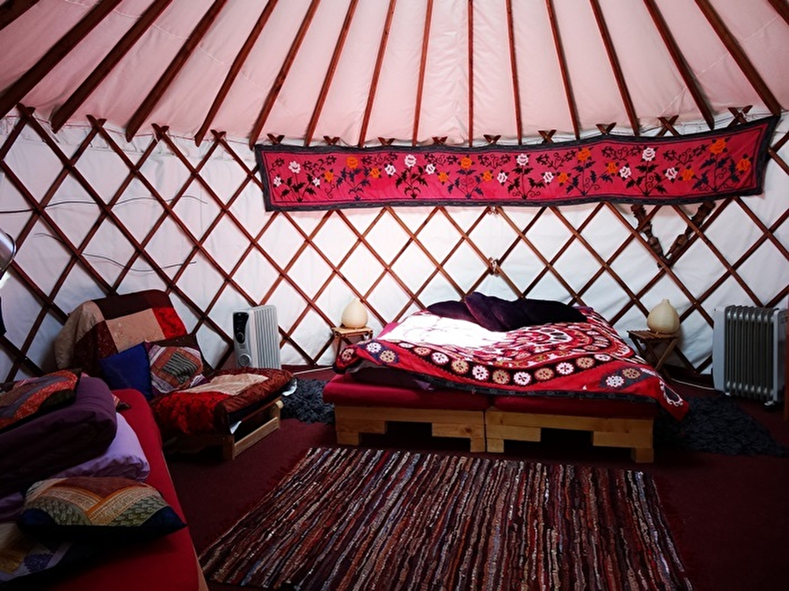 1 yourte (4 places) et 2 tipis (4 et 6 places) à proximité du refuge, pour 14 à 15 personnes, à 500 m de "la Borne au lion", site historique et point de vue superbe. Demi-pension uniquement