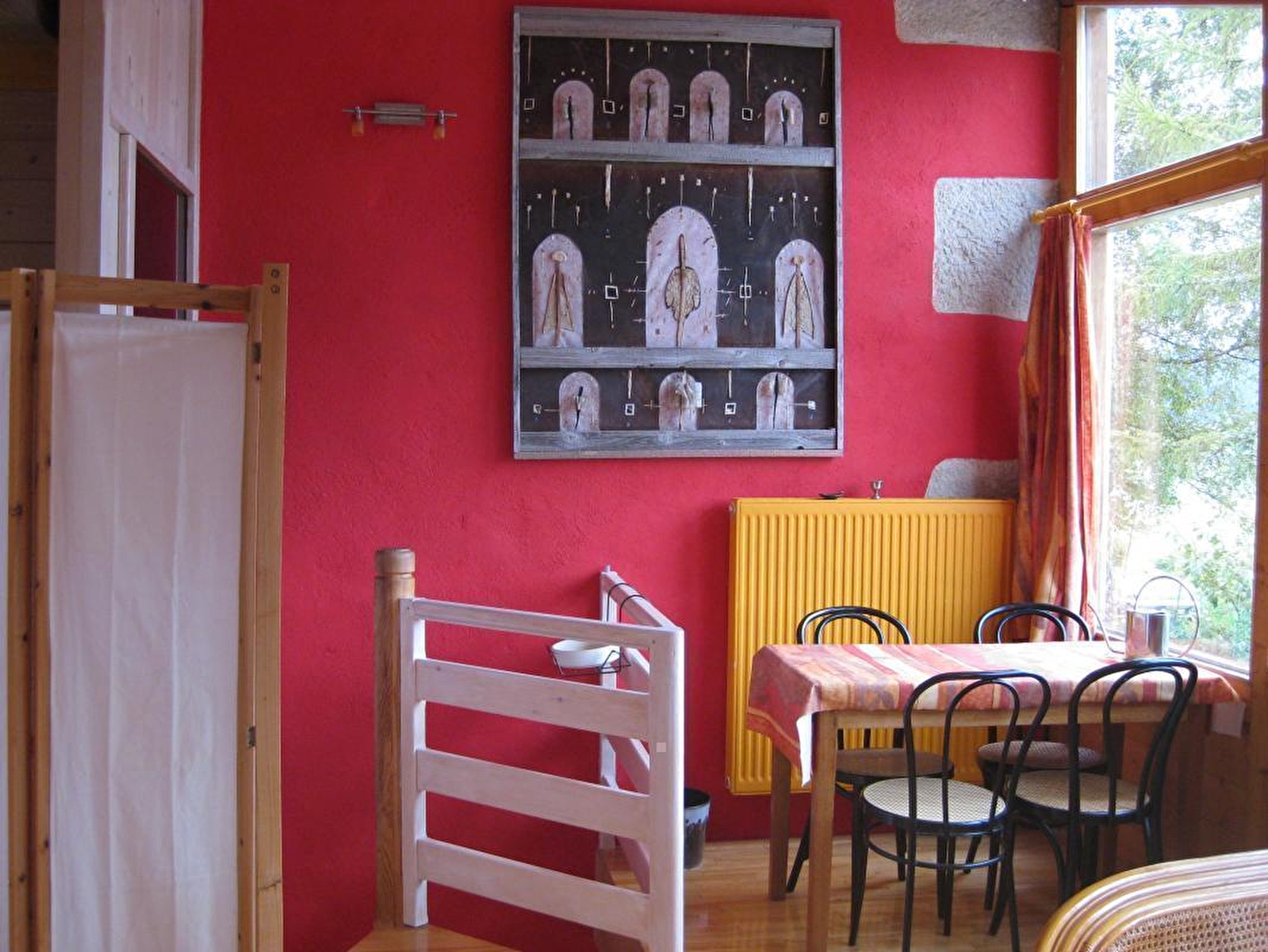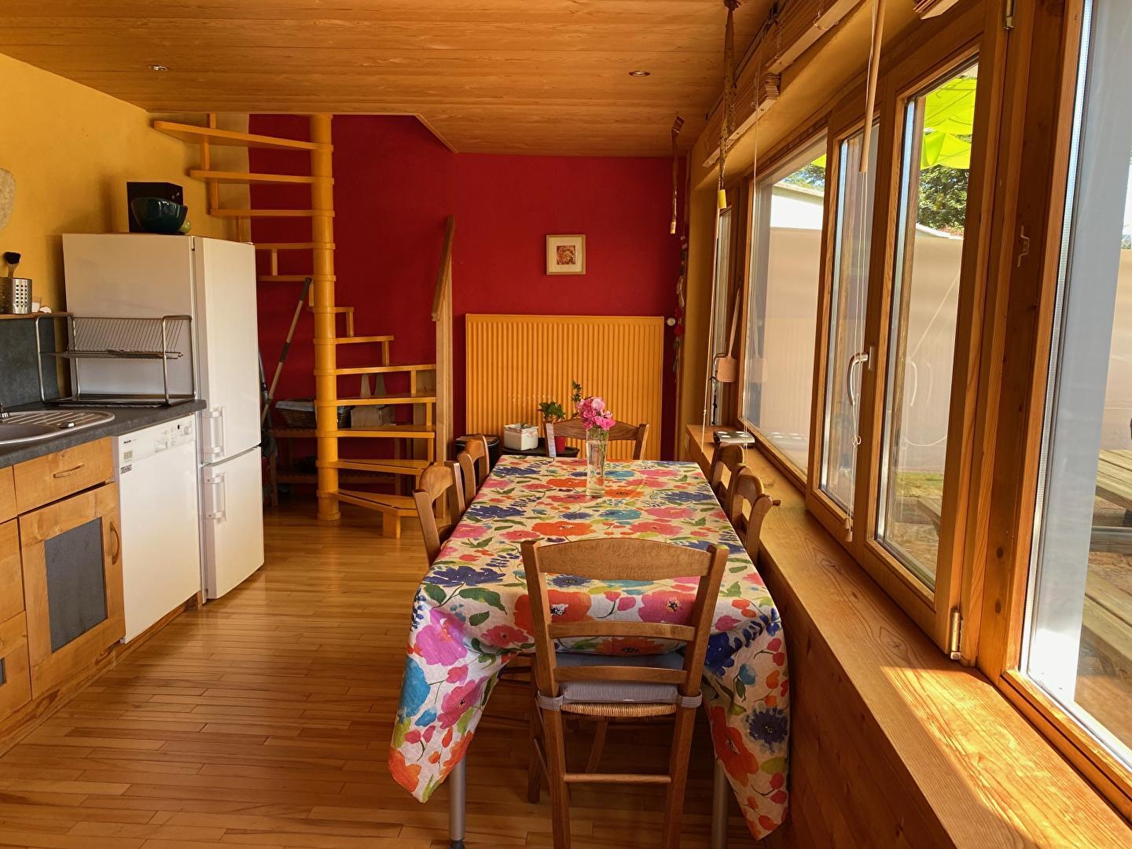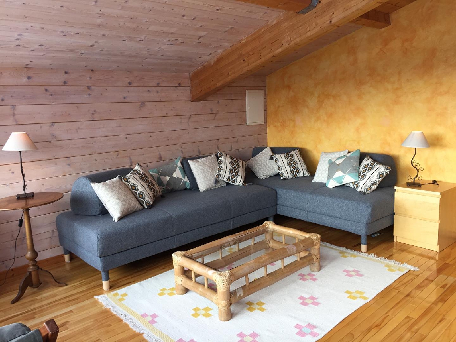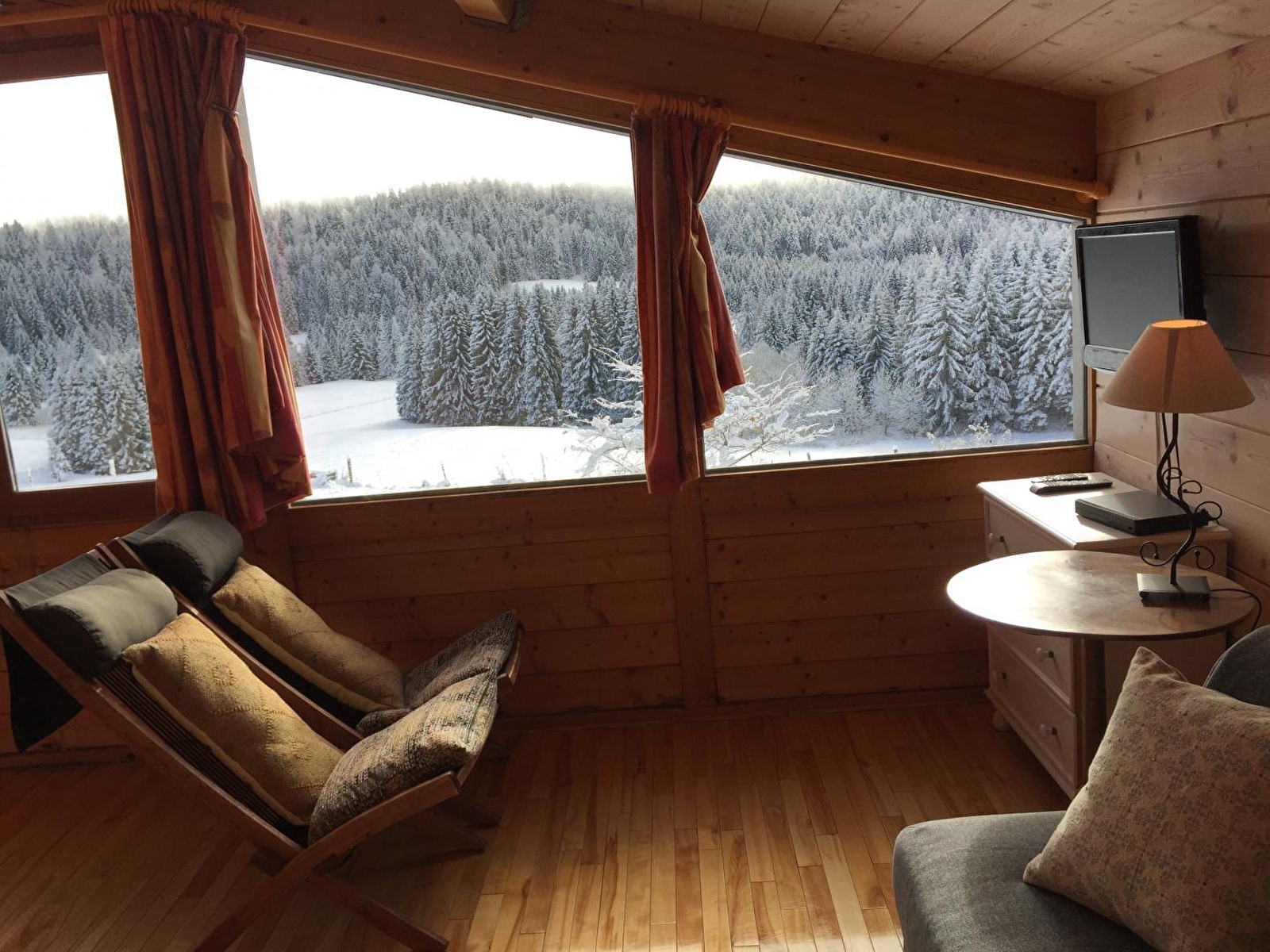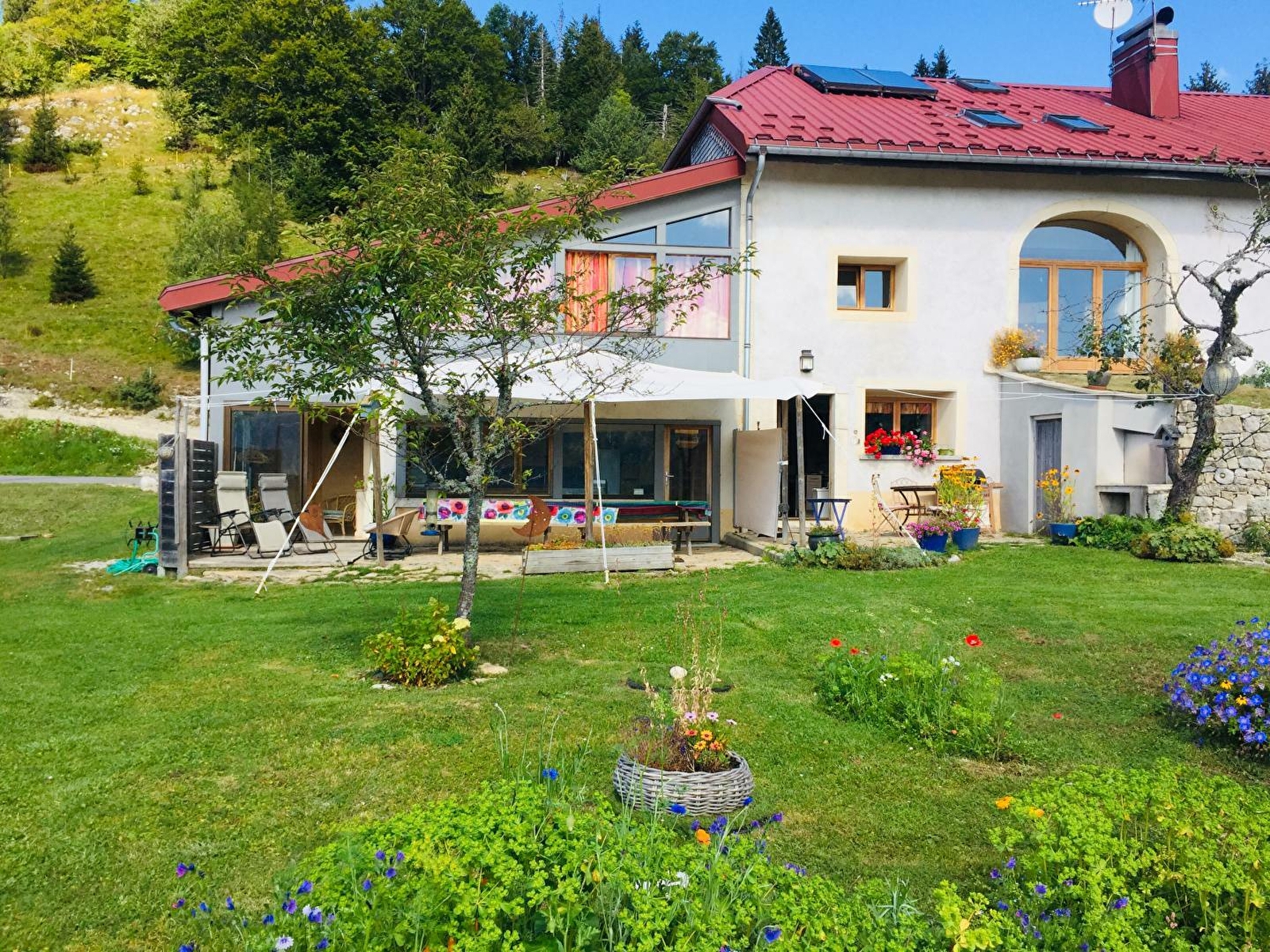 Belle maison mitoyenne en plaine nature, à 20mn de St Claude et à 10mn de Lamoura, offrant une vue splendide et dégagée sur les paysages de montagne. Rénovée avec des matériaux sains, le propriétaire utilise les énergies renouvelables (panneaux solaires, récupération d'eau de pluie, chauffage à granulés...) Au rez de chaussée : espace détente, cuisine équipée. A l'étage: mezzanine avec 2 lits 1 place, 1 salle de bains avec double vasques et baignoire balnéo. 1salle d'eau avec douche, wc indépendants. Chambre avec 1 lit 2 places et 1chambre avec 2 lits 1 place. Grand terrain attenant non clos, salon de jardin, barbecue. Lit et chaise bébé sur demande.