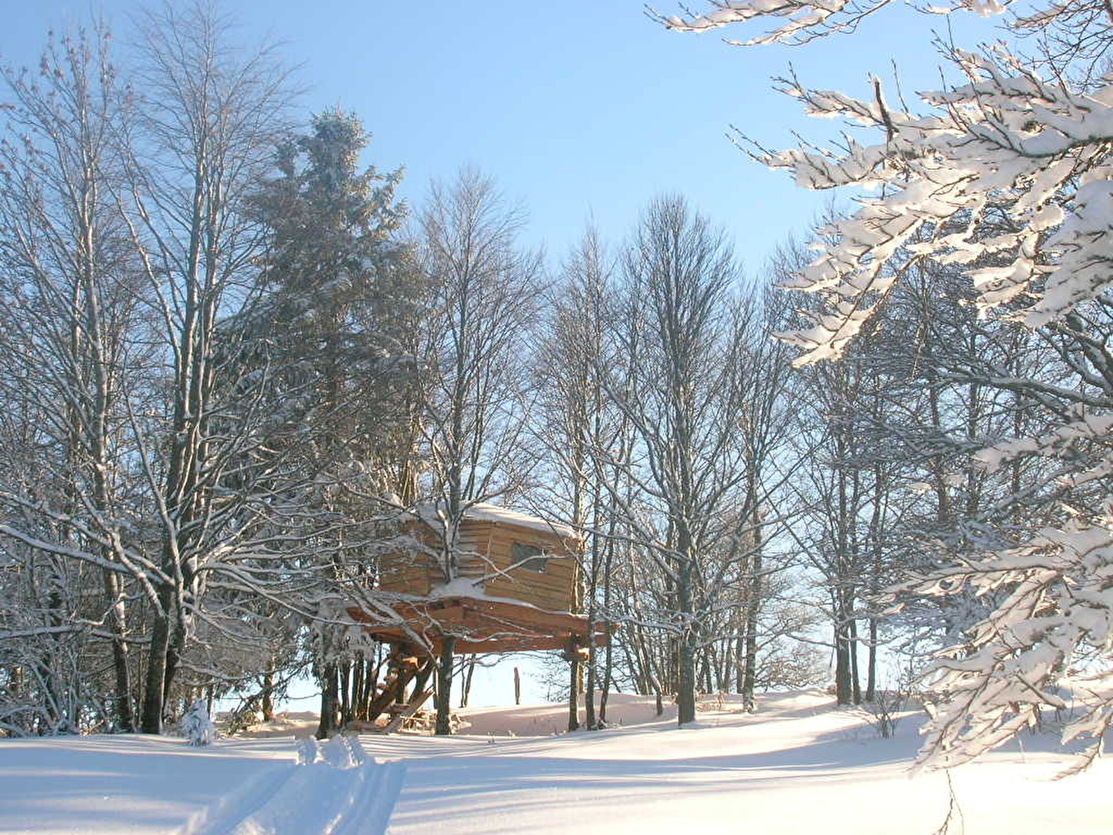 En poussant la porte de cette cabane posée dans les arbres, on peut voir que dame nature a su garder sa place , enveloppant de branches ce cocon, en préservant l’intimité des habitants de passage, au fil des saisons.