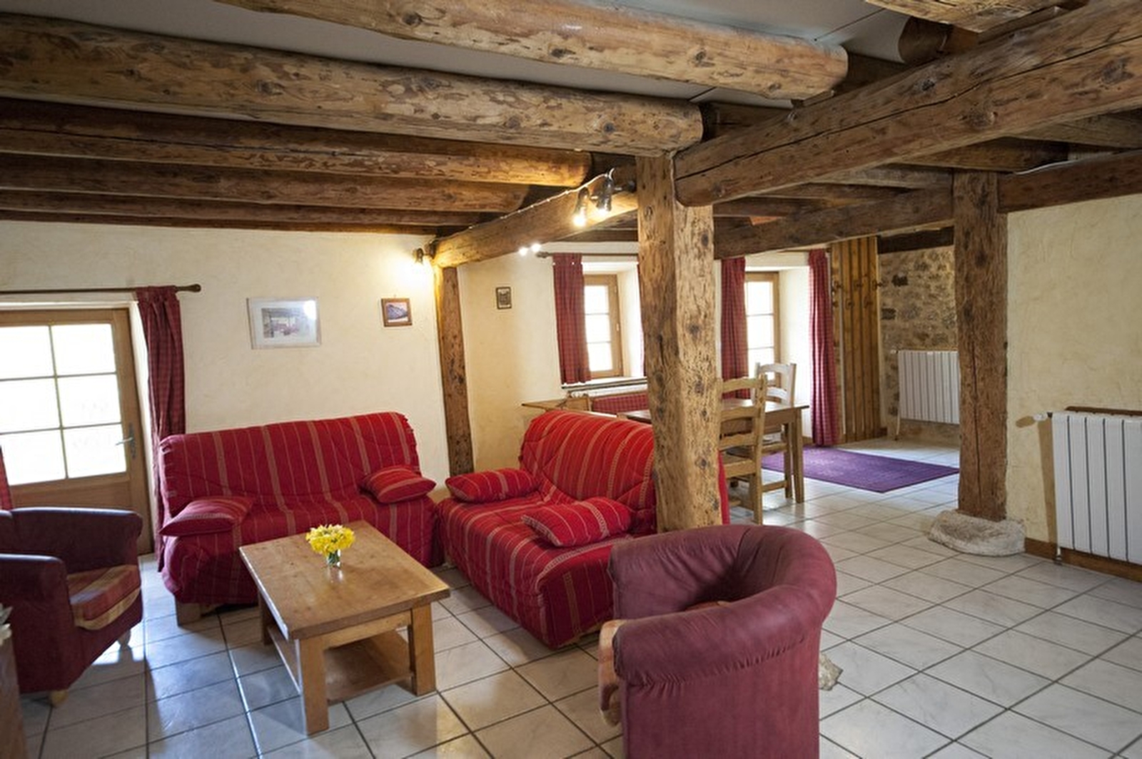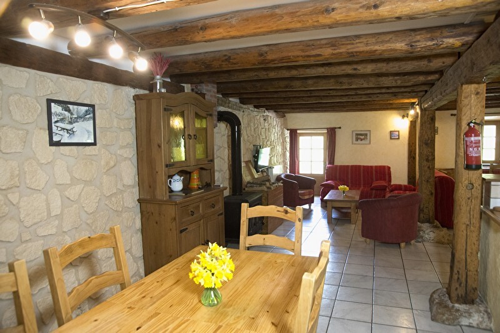 A la sortie du village, gîte aménagé dans la maison des propriétaires, dans une ferme comtoise rénovée, avec beaucoup de caractère et dans le respect de l'authenticité. Au rez de Chaussée : grand séjour - salon ( 2 canapés convertibles) salle à manger (poêle à bois), cuisine américaine toute équipée. Salle d'eau avec sauna et wc, sèche-linge. Chambre 1: 1 lit 2 places et 1 lit 1place. A l'étage: 1 lit 2places + 1 lit 1place, salle d'eau et wc attenant. Chauffage central. Terrasse, salon de jardin et barbecue. Terrain non clos avec jeux d'enfants. Charges non comprises. Bois en sus. Lits faits à l'arrivée.
