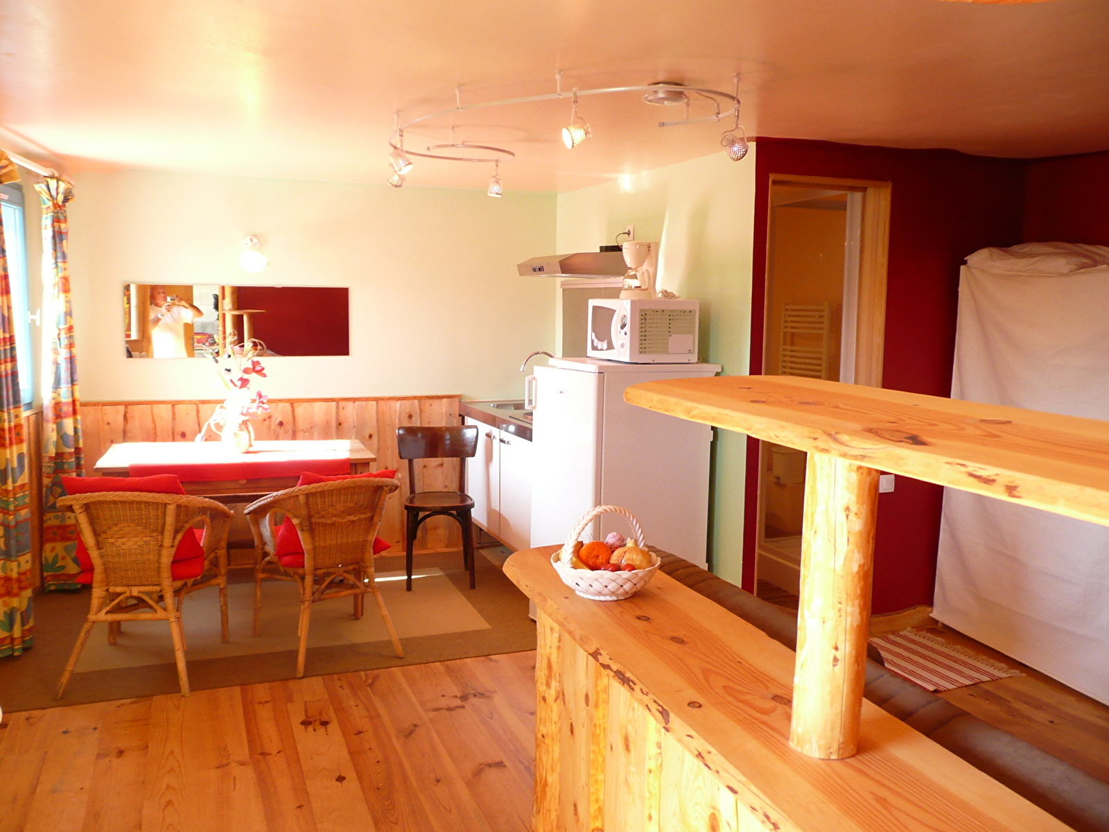 Coquet studio dans chalet en rondins, au village pouvant accueillir jusqu'à 3 personnes.