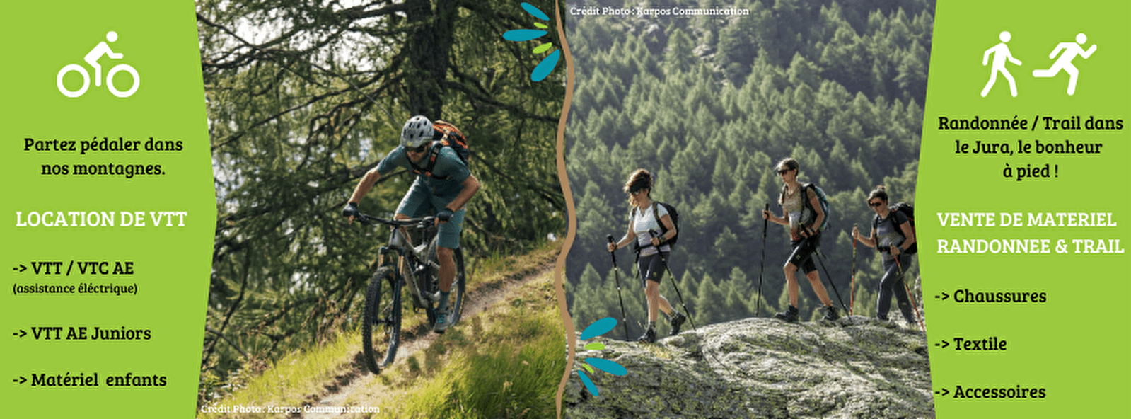 • Location : VTT, VTC et vélos à assistance électrique (VAE) pour adultes et enfants, remorques et sièges enfant.