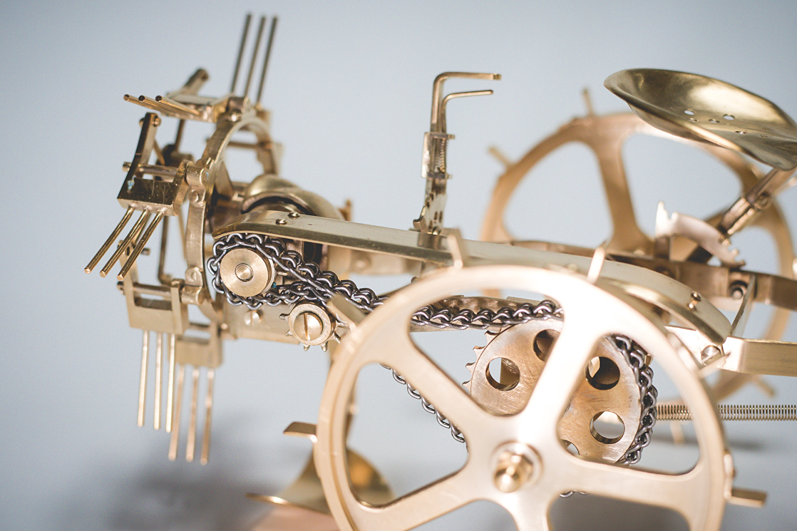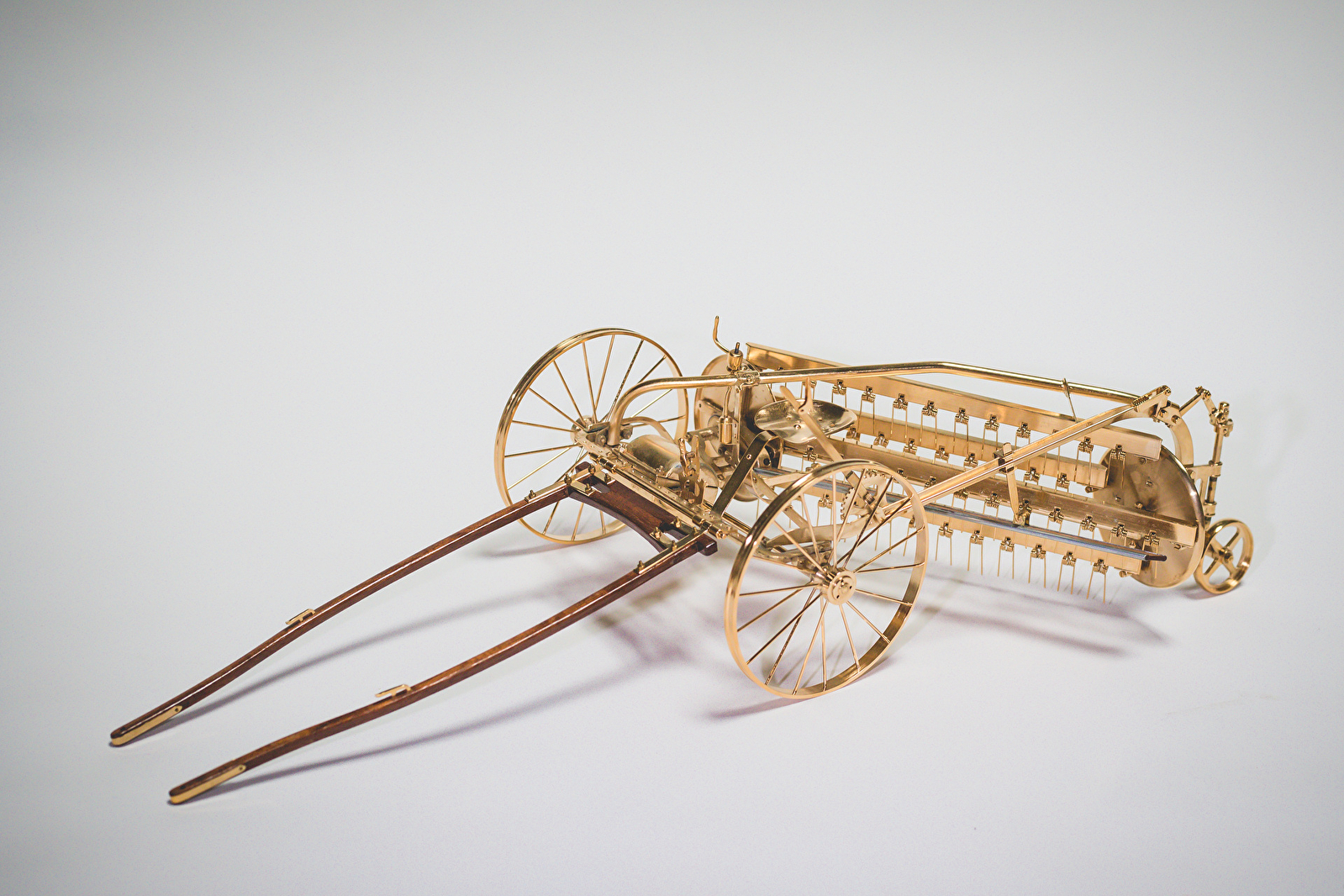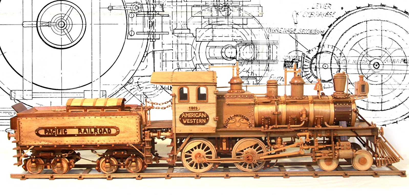 - Une maquette de scierie à vapeur. La chaudières, les châssis, le chariot et les moteurs sont en acier . Les camions sont entièrement en bois.
