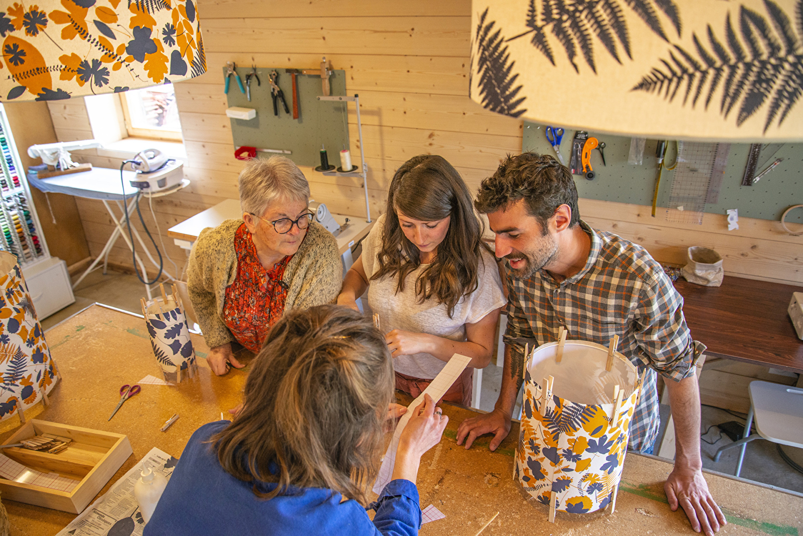 Envie d'une activité créative en groupe, entre amis-ies, collègues ou avec ses parents, son enfant, son frère ou sa soeur? Venez prendre du temps pour vous dans mon atelier le temps d'un stage d'abat-jour en tissu imprimé. Ce stage créatif et artisanal mixe la sérigraphie et la confection d'abat-jour cylindrique. Vous décidez de la taille de votre abat-jour ainsi que de son imprimé. Résultat : un luminaire totalement unique et raccord avec votre décoration. Aucun pré-requis, juste avoir envie !
