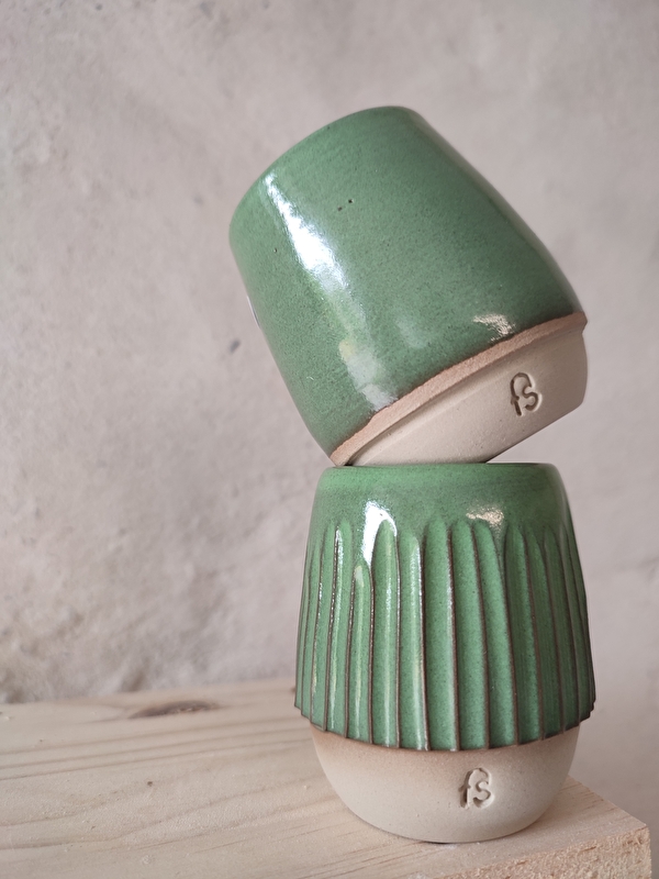 J’observe, j’imagine, je modèle, je teste, je casse, je recycle et je crée des objets de tous les jours. Je réalise chaque pièce à la main, principalement sur mon tour de potier. Chacune est minutieusement façonnée, affinée et émaillée. J’utilise principalement du grès blanc qui cuit à 1250°. C’est une terre solide, idéale pour les poteries à usage culinaire. Mon atelier avec espace boutique, se situe au rez-de-chaussée de ma maison, face aux montagnes du Haut Jura, il vous est ouvert.
